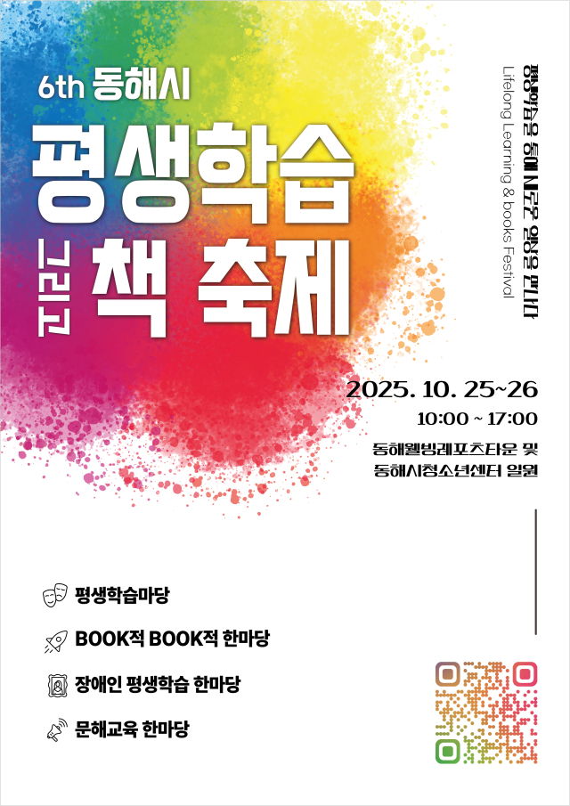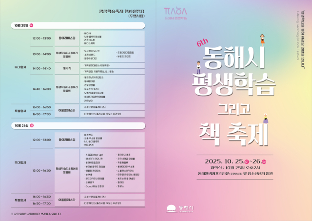 【동해】‘제6회 동해시 평생학습 그리고 책 축제’가 오는 25일, 26일 이틀간 동해웰빙레포츠타운 및 동해시청소년센터 일원에서 열린다.