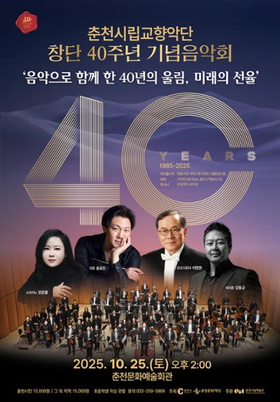 춘천시립교향악단의 창단 40주년 기념음악회가 25일 춘천문화예술회관에서 열린다.
