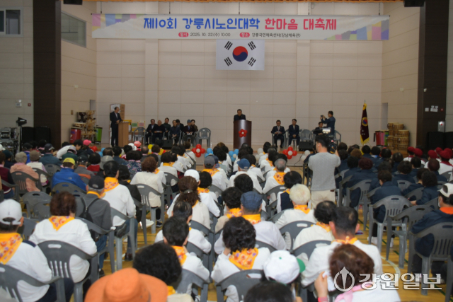 제10회 강릉시 노인대학(3개대학) 한마음 대축제가 22일 강남체육관에서 김홍규 강릉시장, 최익순 강릉시의장, 심재빈 노인회장을 비롯한 노인대학 수강생 400여 명이 참석한 가운데 열렸다. 강릉=권태명기자