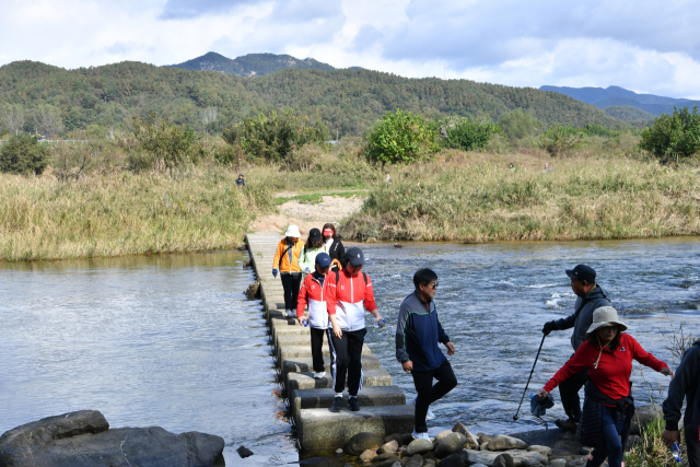 【횡성】가을 정취가 무르익은 횡성 섬강 둘레길이 걷기 마니아들의 발길로 북적였다.