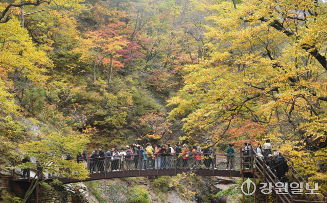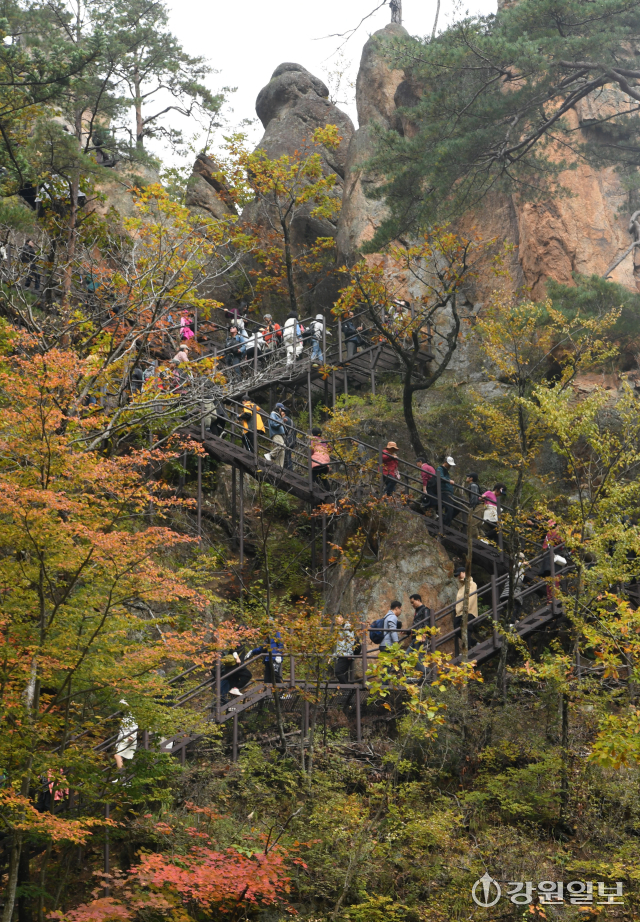 설악산 단풍 인파-설악산을 비롯해 도내 명산들이 단풍 절정을 이룬 가운데 지난 25일 설악산 주전골을 찾아 관광객들이 인산인해를 이루고 있다. 설악산=김남덕기자설악산 단풍 인파-설악산을 비롯해 도내 명산들이 단풍 절정을 이룬 가운데 지난 25일 설악산 주전골을 찾아 관광객들이 인산인해를 이루고 있다. 설악산=김남덕기자설악산 단풍 인파-설악산을 비롯해 도내 명산들이 단풍 절정을 이룬 가운데 지난 25일 설악산 주전골을 찾아 관광객들이 인산인해를 이루고 있다. 설악산=김남덕기자설악산 단풍 인파-설악산을 비롯해 도내 명산들이 단풍 절정을 이룬 가운데 지난 25일 설악산 주전골을 찾아 관광객들이 인산인해를 이루고 있다. 설악산=김남덕기자