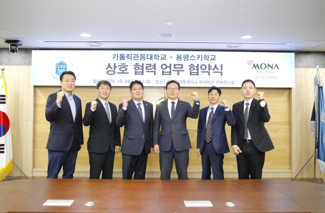 가톨릭관동대(총장:김용승) 스포츠재활의학전공은 지난 24일 마리아관 컨버전스룸에서 모나용평 스키학교와 업무협약을 체결했다.