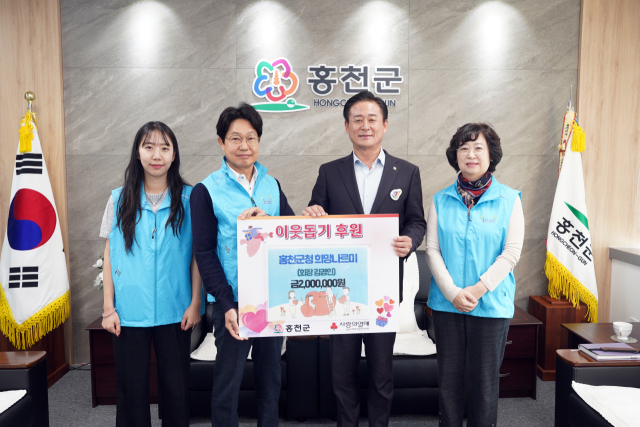 홍천군청 공무원들로 구성된 봉사단인 희망나르미(단장:김경인)는 27일 군수 접견실에서 어려운 이웃돕기 성금으로 200만원을 기탁했다. 희망나르미는 집수리 봉사, 연탄 나눔 봉사 등 다양한 봉사 활동을 펼치고 있다.