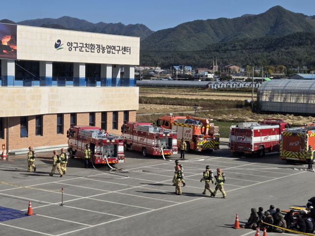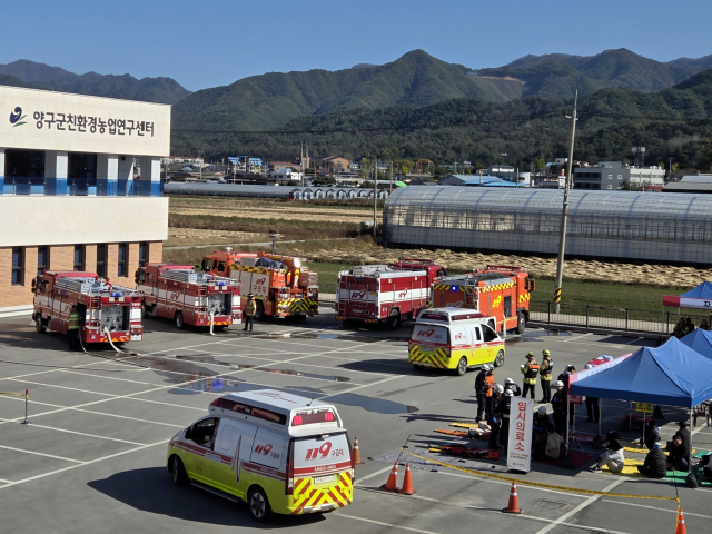 【양구】양구소방서는 28일 양구군 친환경농업연구센터에서 ‘2025년 양구군 긴급구조 종합훈련’을 실시했다.