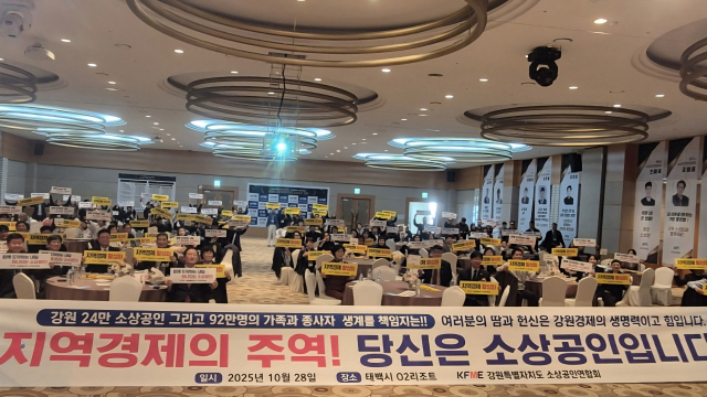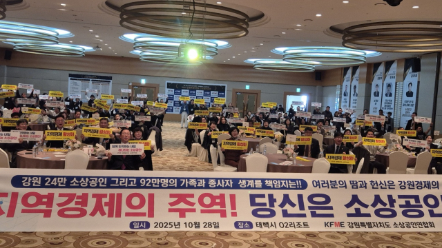 이극상 강원도소상공인연합회장은 “24만명의 강원소상공인을 비롯해 가족 및 종사자는 92만명 이상이다. 이들은 강원특별자치도 인구의 60%의 생계를 책임지고 있다”며 “우리 소상공인의 땀과 헌신이 있기에 강원 미래는 행복이며 희망이다. 위기를 함께 돌파해나가자”고 다짐했다.