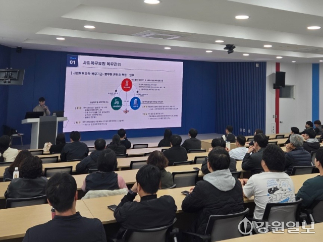 강원영동병무지청(청장: 김정수)은 29일부터 오는 31일까지 영동 지역의 사회복무요원 복무기관 담당 직원을 대상으로 ‘25년 하반기 사회복무요원 복무기관 담당자 교육을 실시한다.
