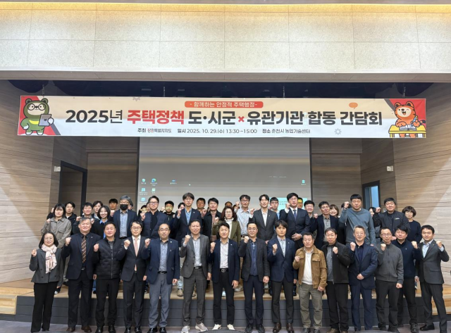 2025 강원특별자치도(지사:김진태) 주택정책 도시군 유관기관 합동간담회가 29일 춘천시농업기술센터에서 도와 18개 시군, 한국토지주택공사(LH) 강원지역본부, 주택도시보증공사(HUG) 강원지사, 대한주택건설협회 등 관계자 60여 명이 참석한 가운데 열렸다.