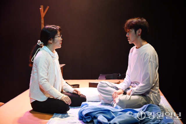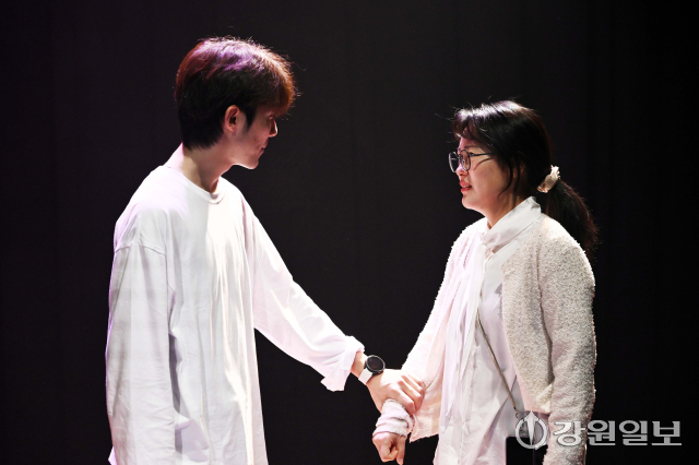 2025 강원일보 신춘문예 희곡부문 당선작 ‘내 책상 위, 작고 따뜻한 산세베리아 화분’ 연극 공연이 오는 31일과 다음달 1일 춘천 봄내극장에서 이어진다. 사진은 리허설 모습.