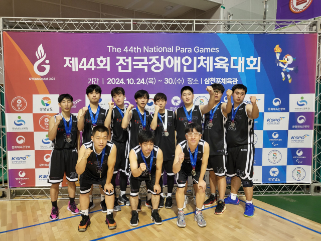 ◇강원특별자치도장애인종합복지관(관장:엄정호) 소속 해냄스포츠대학 농구팀 반비위너스가 오는 5일까지 부산 일대에서 열리는 ‘제45회 전국장애인체육대회’에 도대표 농구팀으로 출전한다. 사진은 지난해 개최된 전국장애인체육대회 수상 현장.
