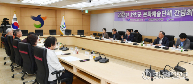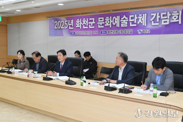 화천군 문화예술단체 간담회가 5일 군청에서 최문순 군수, 정종성 군문화원장, 여혜숙 문화원 부원장을 비롯해 지역 문화예술단체 관계자들이 참석한 가운데 열렸다.