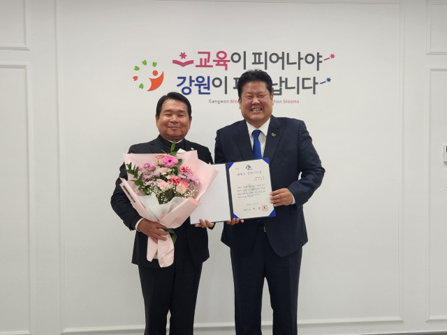이상호 태백시장이 5일 강원특별자치도교육청을 찾아 신경호 도교육감에게 '태백시 명예시민증'을 전달했다.