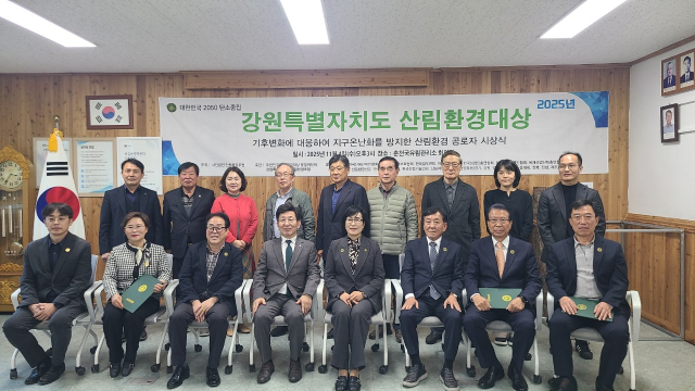 대한민국산림환경대상위원회는 5일 오후 3시 춘천국유림관리소 회의실에서 ‘제3회 강원산림환경대상 시상식’을 열고 산림환경 분야 발전에 기여한 개인과 단체에 상을 수여했다.