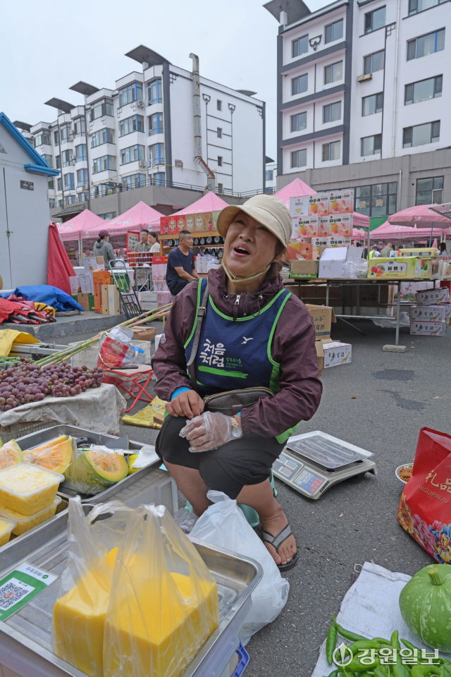 그의 좌판에는 한 가지 더 특별한 것이 있다. 묵을 사는 손님들에게 단호박 한 조각을 곁들이는 것이다. “이건 내가 직접 키운 호박이에요. 묵이랑 같이 먹으면 더 맛있어서 늘 드리고 있어요.” 10년 동안 변하지 않은 최복순씨만의 정이다. “그냥 묵만 먹어도 맛있지만 이왕 먹는 거면 더 맛있게 드셨으면 좋겠어요. 내가 드리는 게 대단한 건 아니지만 사람들이 그걸 맛있게 먹는 걸 보면 기분이 좋잖아요.” 이런 정이 쌓여 있는 그의 좌판엔 인터뷰 중에도 사람들의 발길이 끊이지 않았다.