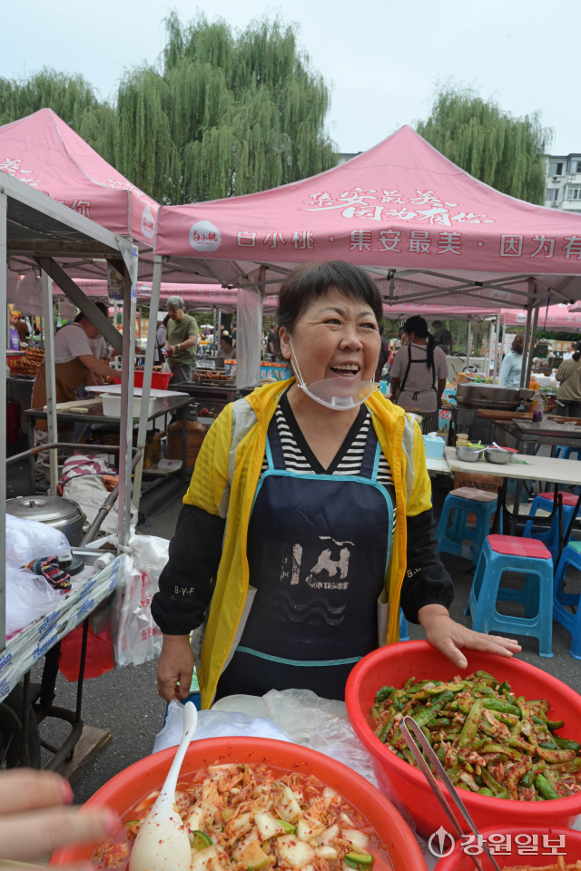 시장 한켠, 김치를 파는 조선족 상인 김정애(58) 씨 역시 오랜 세월 좌판을 지켜온 인물이다. “이 일은 원래 우리 엄마가 시작하셨어요. 벌써 서른 해가 넘었네요. 어릴 때부터 김치 담그는 걸 보고 자라다 보니 자연스럽게 제가 이어받았죠.” 좌판 위에는 배추김치, 오이김치, 도라지무침, 마늘쫑 장아찌 등 열 가지가 넘는 반찬이 줄지어 놓였다. 김 씨는 손님이 다가오면 직접 맛을 설명하고 권한다. “이건 오늘 아침에 담근 김치예요. 아삭해서 밥이랑 먹기 좋죠.”