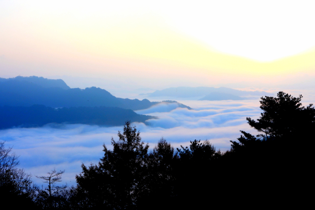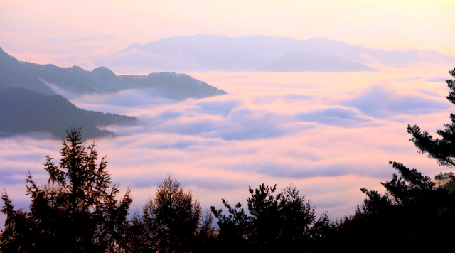 9일 오전 인제군 인제읍 원대리의 박달고치 전망대에서 바라본 운해 풍경이 설악산 자락과 어울려 절경을 이루고 있다. 사진=인제군청 제공