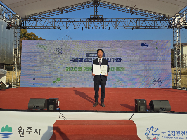 강원대(총장:정재연) 정진근 지식재산전문인력양성중점대학사업단장이 지난 7일 원주 국립강원전문과학관에서 열린 ‘제10회 강원과학기술대축전’에서 강원지식재산 유공자 표창(강원특별자치도지사상)을 수상했다.