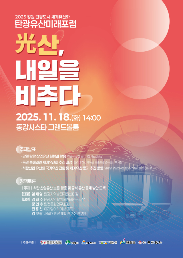 창간 80주년을 맞은 강원일보사는 강원특별자치도, 태백시, 삼척시, 정선군, 영월군 함께 ‘2025 하반기 탄광유산미래포럼’을 개최합니다.