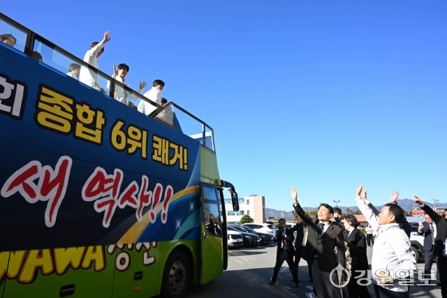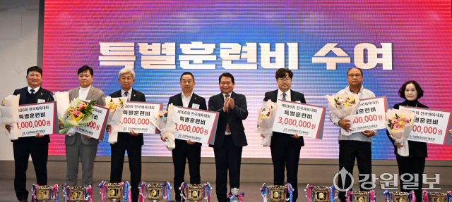 전국체육대회 강원자치도 선수단 6위 달성 환영행사가 10일 춘천 스카이컨벤션에서 선수단과 김진태 지사, 김시성 도의장, 신경호 교육감, 양희구 도체육회장, 박진오 강원일보 사장을 비롯한 내빈들이 참석한 가운데 열렸다.