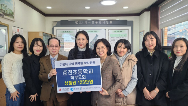 춘천초 학부모회(회장:박진희)는 11일 학생, 학부모와 함께 진행한 바자회 수익금 123만원을 약사명동지역사회보장협의체(위원장:신진태)에 전달했다.