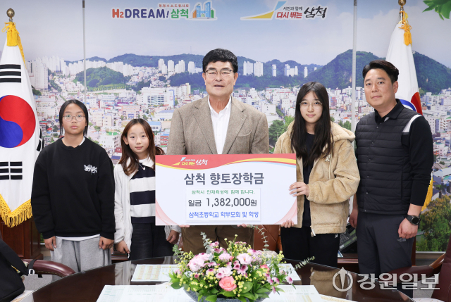 삼척초등학교 학부모회(회장:윤재민) 및 학생들이 11일 학교 알뜰시장을 운영한 수익금 138만2,000원을 삼척향토장학금으로 삼척시에 기탁했다.
