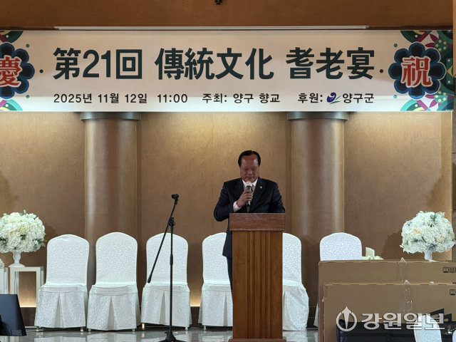 양구향교(전교:김세현)는 12일 전원회관에서 정창수 양구군의장 및 군의원, 배영주 양구부군수, 김왕규 도의원 등이 참석한 가운데 제21회 기로연을 개최했다. 사진=이규호기자