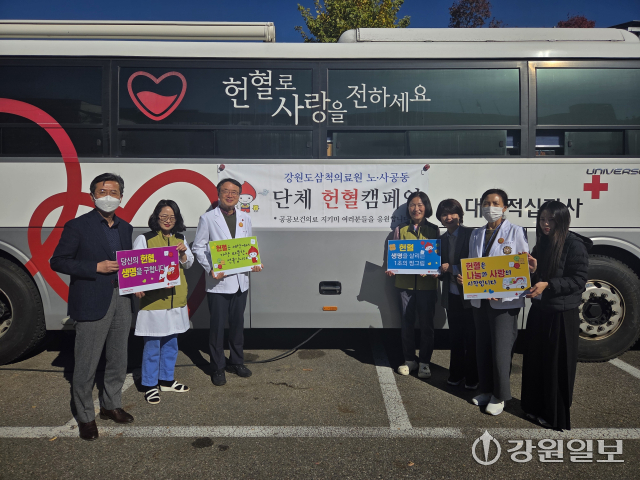 삼척의료원(원장:권오선)은 12일 의료원 주차장 헌혈 버스에서 혈액 부족 문제 해소와 생명 나눔 문화 확산을 위한 ‘노·사 공동 사랑의 헌혈 캠페인’을 가졌다.