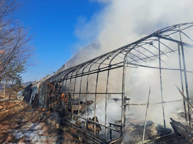 ◇12일 오전 9시6분께 홍천군 서석면의 한 비닐하우스에서 불이 났다. 사진=강원특별자치도소방본부 제공