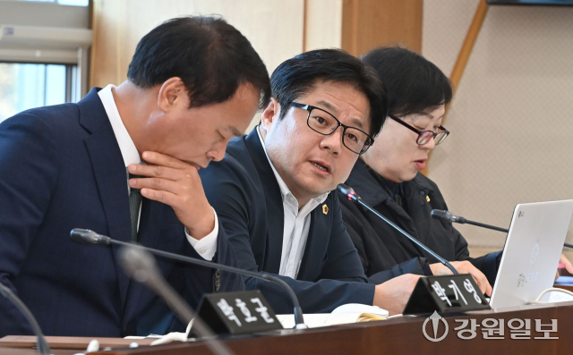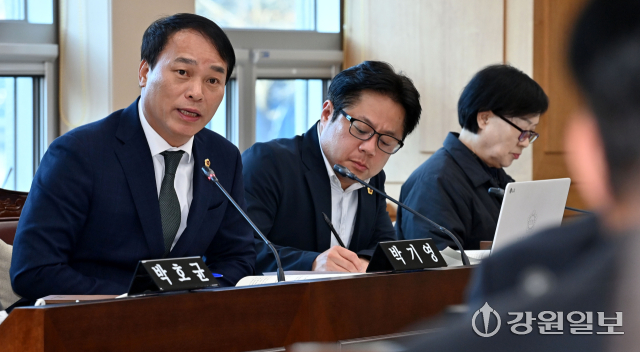 강원특별자치도의회 사회문화위원회(위원장:원제용)는 13일 위원회 회의실에서 강원문화재단에 대한 행정사무감사를 실시했다. 박승선기자강원특별자치도의회 사회문화위원회(위원장:원제용)는 13일 위원회 회의실에서 강원문화재단에 대한 행정사무감사를 실시했다. 박기영(국민의힘·춘천) 의원이 신현상 강원문화재단 대표이사에게 질의하고 있다. 박승선기자강원특별자치도의회 사회문화위원회(위원장:원제용)는 13일 위원회 회의실에서 강원문화재단에 대한 행정사무감사를 실시했다. 김기홍(국민의힘·원주) 의원이 신현상 강원문화재단 대표이사에게 질의하고 있다. 박승선기자