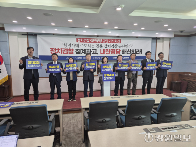 더민주강원혁신회의는 13일 도청 브리핑룸에서 허소영(민주당 도당 수석대변인)·장신상(전 횡성군수) 공동대표 등이 참석한 가운데 기자회견을 열고 "대장동 사건의 본질은 이재명 대통령을 겨냥한 정치적 공격"이라며 "대검의 항소 포기 결정에 반발한 검찰 내부 항명은 친윤 정치검찰이 자신들의 범죄적 행태를 덮기 위한 제2의 조작이자 명백한 정치 항명"이라고 주장했다.