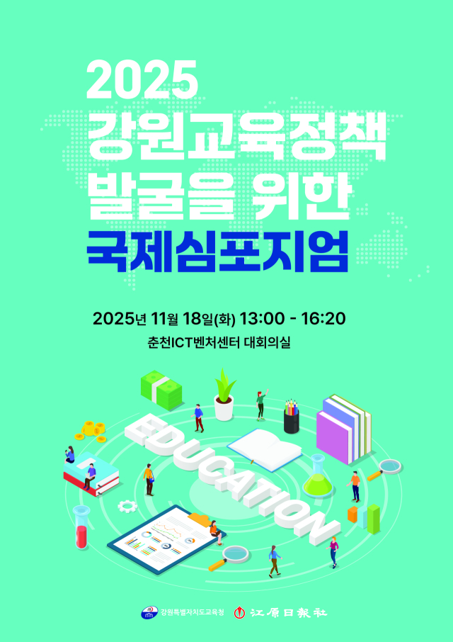 강원특별자치도교육청과 강원일보가 공동으로 마련한 ‘2025 강원 교육정책 발굴을 위한 국제심포지엄’이 18일 오후 1시 춘천 ICT벤처타운에서 열려 대만·강원 교육관계자들이 한 자리에 모인다.
