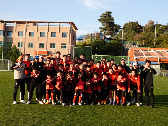 이번 프로그램은 U-12 선수들의 바람과 선수단의 배려가 맞물리며 성사됐다. 첫 만남의 긴장을 풀기 위해 레크리에이션이 먼저 진행됐고, 이어 김태환·정승빈·김형진·박수환 등과 11대11 미니게임이 펼쳐지며 훈련장은 금세 웃음과 환호로 가득 찼다.