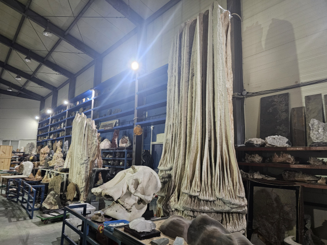 ■매주 목요일 특별한 만남=오직 우석헌자연사박물관에서만 경험할 수 있는 ‘오픈형 수장고’는 박물관의 심장이라 할 정도로 특별하고 소중한 공간이다. 수장고에는 석회암 동굴을 연상케 하는 거대한 종유석을 중심으로 수십만 점의 지질 관련 표본들이 태고의 이야기를 속삭이며 숨죽이고 있다.