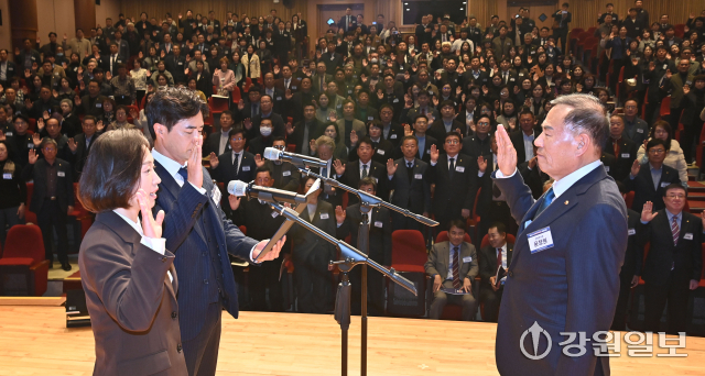제22기 민주평화통일자문회의 강원지역회의 출범대회가 17일 한림대 일송아트홀에서 김진태 강원자치도지사, 김시성 도의장, 윤장원 민주평화통일자문회의 강원부의장을 비롯한 자문위원 등이 참석한 가운데 열렸다.