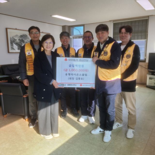 용평라이온스클럽(회장:김종호)이 18일 용평면사무소에서 저소득 가정을 위해 사용해 달라며 회원들이 십시일반 모은 기부금 100만원을 서윤숙 용평면장에게 전달했다.
