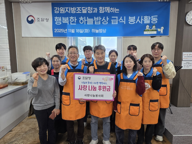 강원지방조달청(청장:이경원) ‘사랑나눔’ 봉사 동호회는 18일 (사)춘천연탄은행 밥상공동체를 방문, 독거 어르신들에게 따뜻한 식사를 제공하고 후원금도 함께 전달했다.