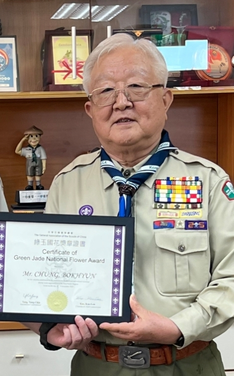 정복현 스카우트강원연맹장은 최근 중화민국대만 스카우트연맹 고국윤 총재로부터 50년간 국제교류 활성화에 기여한 공로를 인정받아 대만 스카우트 최고훈장인 ‘녹옥국화장(綠玉菊花章)’을 수상했다고 18일 밝혔다. 녹옥국화장은 대만 스카우트연맹이 수여하는 최고 등급의 포상이다. 오랜 기간 스카우트 운동 발전에 헌신하고 국가 간 교류와 우호 증진에 탁월한 공적을 남긴 지도자에게만 수여되는 상징적인 훈장으로, 스카우트 지도자로서의 최고의 명예와 덕목을 상징한다.