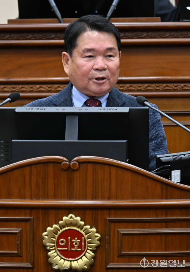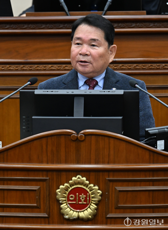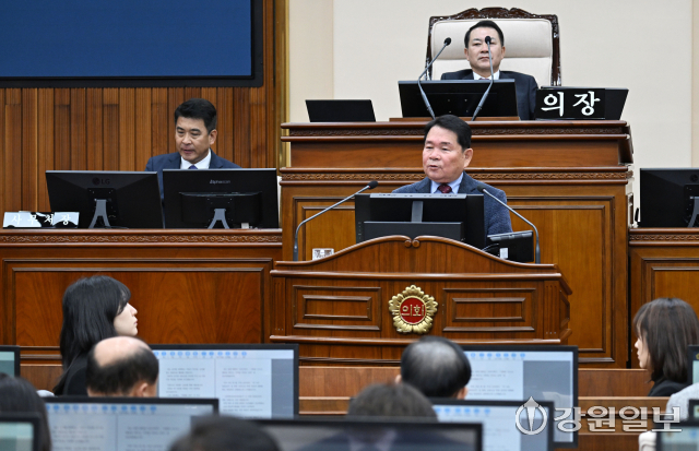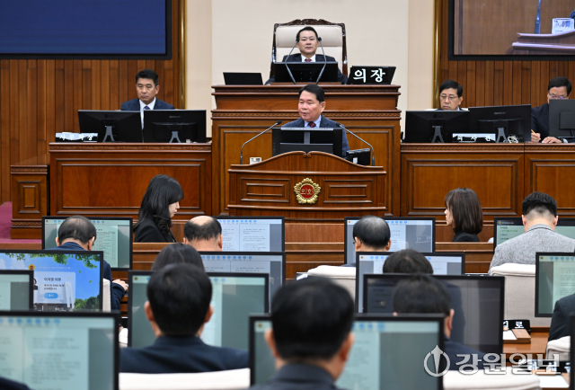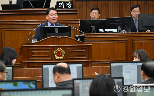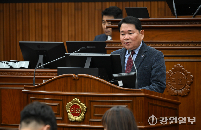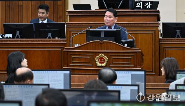 강원특별자치도의회(의장:김시성)는 19일 본회의장에서 제342회 정례회 제2차본회의를 개최했다. 신경호 도교육감이 예산안 제출에 따른 시정연설을 하고 있다.