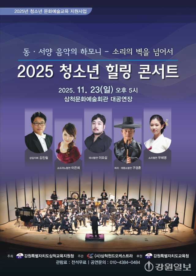 【삼척】삼척교육지원청(교육장:홍명표)이 오는 23일 오후 5시 삼척문화예술회관 대공연장에서 ‘2025 청소년 힐링 콘서트’를 개최한다.