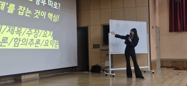 원 강사는 자신의 내신 등급별 강의를 소개한 뒤 실제 기출문제를 뽑아내 정답을 고르는 요령을 설명했다. 이와 함께 자신의 목표와 고민을 매일매일 수기로 적어두는 노트를 만들면 앞으로 대입 준비에 많은 도움을 받을 것이라고 조언했다.