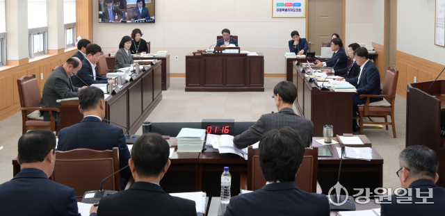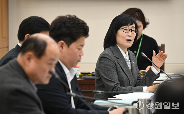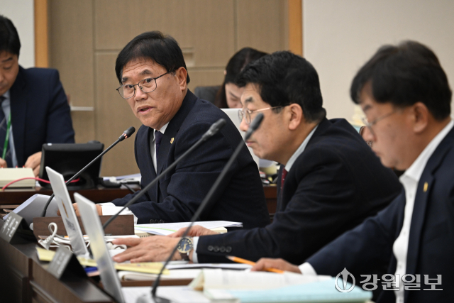 강원특별자치도의회 안전건설위원회(위원장:최규만)는 24일 위원회 회의실에서 제342회 정례회 제4차회의를 열고 '2025년도 제3회 도 추가경정예산안' 및 '2026년도 예산안' 등을 심사했다. 양숙희(국민의힘·춘천)의원이 예산안에 대해 질의하고 있다. 박승선기자강원특별자치도의회 안전건설위원회(위원장:최규만)는 24일 위원회 회의실에서 제342회 정례회 제4차회의를 열고 '2025년도 제3회 도 추가경정예산안' 및 '2026년도 예산안' 등을 심사했다. 홍성기(국민의힘·홍천)의원이 질의하고 있다. 박승선기자