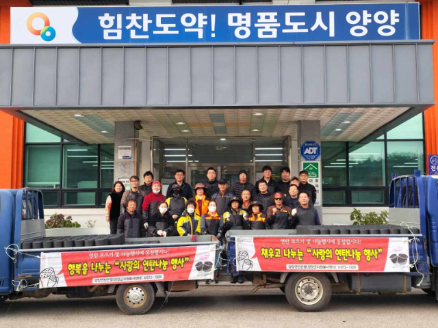 양양군 손양면 봉사 단체인 손양면사랑회, 손양면여성의용소방대, 손양면의용소방대, 손양면자율방범대는 23일 취약계층을 위한 ‘사랑의 연탄 나눔’을 실시하여 연탄 2,000장을 직접 운반해 어려운 이웃에게 전달했다.