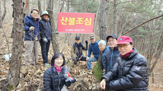 최근 건조한 날씨로 산불이 잇따르자 행정동우회는 도민들에게 산불 위험과 예방의 중요성을 알리기 위해 주요 탐방로에 산불조심 현수막을 게첨했다. 또 방문객들에게 안전수칙을 안내했다.