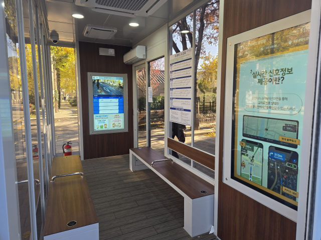 내부에 설치된 스크린을 통해 외부 CCTV 영상과 연계된 버스정보시스템(BIS)을 실시간으로 제공해, 버스 도착 여부를 직관적으로 확인할 수 있다.