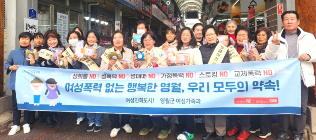 영월군과 영월성폭력상담소, 군여성단체협의회, 여성친화도시 군민참여단 등은 25일 서부시장 일원에서 여성폭력추방주간(11.25~12.1)을 맞아 여성폭력예방 홍보캠페인을 실시했다.