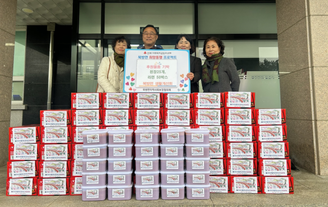 홍천군 북방면 생활개선회(회장:조소화)는 25일 북방면 행정복지센터를 방문해 돌봄 이웃을 위한 후원 물품으로 직접 담근 된장 25개와 라면 50상자를 기탁했다.