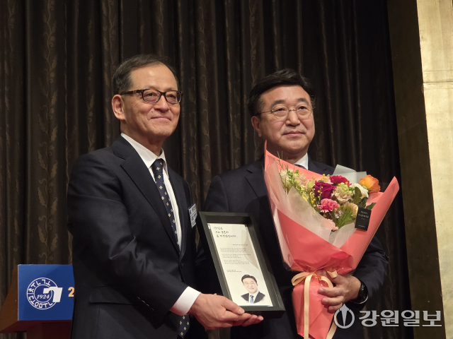 재경 춘천고동창회가 27일 서울 롯데호텔에서 2025년 춘고인 송년의 밤 행사를 개최했다. 이날 제17대 재경춘천고동창회 신임 회장에는 정수복 경기 구리시 윤서병원 원장이 선임됐고 허희영 전 회장이 이임했다.