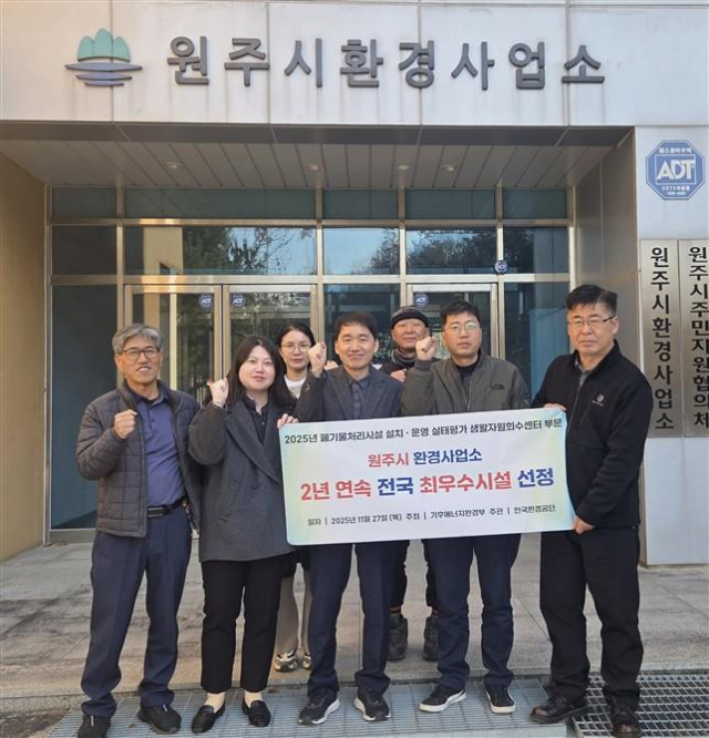 【원주】원주시환경사업소는 기후에너지환경부가 주최하고 한국환경공단이 주관한 ‘폐기물처리시설 운영실태평가’에서 생활자원회수센터 부문 ‘2년 연속 최우수 기관’에 선정됐다고 지난 30일 밝혔다.