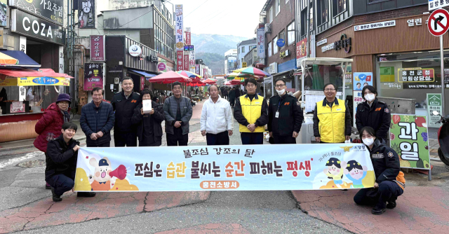 홍천소방서(서장:이강우)는 26일 홍천 중앙 및 전통시장에서 불조심 강조의 달을 맞아 ‘점포 점검의 날’을 열고, 화재 안전 소방상식 퀴즈, 캠페인 등을 실시했다. 이날 소방관들 뿐만 아니라 시민안전관리협의회 회원들도 참여했고, 음성 통화 외에도 문자 메시지와 스마트폰 앱으로 신고가 가능한 119 다매체 신고 서비스에 대해 홍보했다.