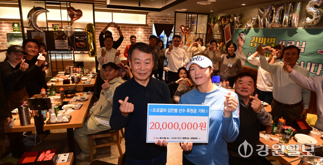 김민별 프로는 지난 30일 강릉에서 열린 랜클럽 '민스타' 회원들과 함께한 자리에서 강원일보 사회복지법인 ‘함께사는 강원세상’에 2,000만원의 후원금을 기탁했다. 지난해 동부건설·한국도지신탁 챔피언십에서 KLPGA 투어 데뷔 첫 우승을 차지한 김민별 프로는 올 시즌 내내 안정된 경기력을 선보이며 팬들의 사랑을 받았다.