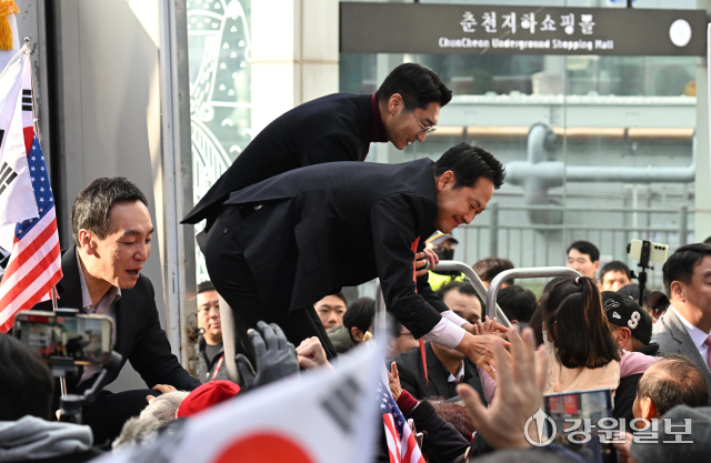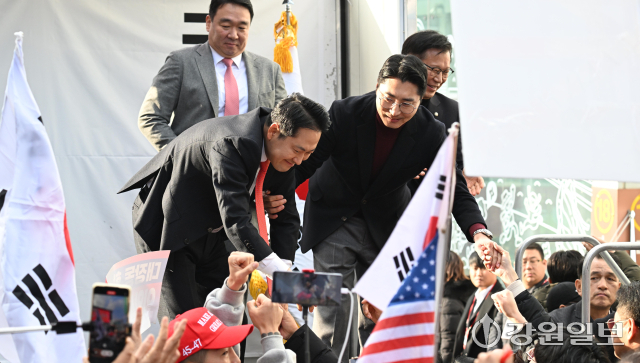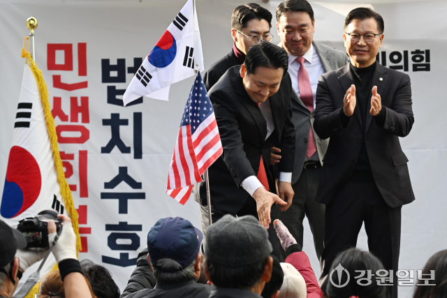 30일 춘천시청 앞에서 열린 국민의힘 '민생회복 법치수호 강원 국민대회'에서 장동혁 대표가 연설하고 있다. 박승선기자30일 춘천시청 앞에서 열린 국민의힘 '민생회복 법치수호 강원 국민대회'에서 장동혁 대표가 연설하고 있다. 박승선기자30일 춘천시청 앞에서 열린 국민의힘 '민생회복 법치수호 강원 국민대회'에서 장동혁 대표가 연설하고 있다. 박승선기자국민의힘이 30일 춘천시청 앞에서 장동혁 대표와 주요 당직자, 강원지역 의원 등이 참석한 가운데 '민생회복 법치수호 강원 국민대회'를 개최했다. 장 대표가 연설을 마친 후 당원 및 지자자들과 악수를 나누며 행사장을 빠져나가고 있다. 박승선기자국민의힘이 30일 춘천시청 앞에서 장동혁 대표와 주요 당직자, 강원지역 의원 등이 참석한 가운데 '민생회복 법치수호 강원 국민대회'를 개최했다. 장 대표가 연설을 마친 후 당원 및 지자자들과 악수를 나누며 행사장을 빠져나가고 있다. 박승선기자국민의힘이 30일 춘천시청 앞에서 장동혁 대표와 주요 당직자, 강원지역 의원 등이 참석한 가운데 '민생회복 법치수호 강원 국민대회'를 개최했다. 장 대표가 연설을 마친 후 당원 및 지자자들과 악수를 나누며 행사장을 빠져나가고 있다. 박승선기자국민의힘이 30일 춘천시청 앞에서 장동혁 대표와 주요 당직자, 강원지역 의원 등이 참석한 가운데 '민생회복 법치수호 강원 국민대회'를 개최했다. 장 대표가 연설을 마친 후 당원 및 지자자들과 악수를 나누며 행사장을 빠져나가고 있다. 박승선기자국민의힘이 30일 춘천시청 앞에서 장동혁 대표와 주요 당직자, 강원지역 의원 등이 참석한 가운데 '민생회복 법치수호 강원 국민대회'를 개최했다. 장 대표가 연설을 마친 후 당원 및 지자자들과 악수를 나누며 행사장을 빠져나가고 있다. 박승선기자국민의힘이 30일 춘천시청 앞에서 장동혁 대표와 주요 당직자, 강원지역 의원 등이 참석한 가운데 '민생회복 법치수호 강원 국민대회'를 개최했다. 장 대표가 연설을 마친 후 당원 및 지자자들과 악수를 나누며 행사장을 빠져나가고 있다. 박승선기자